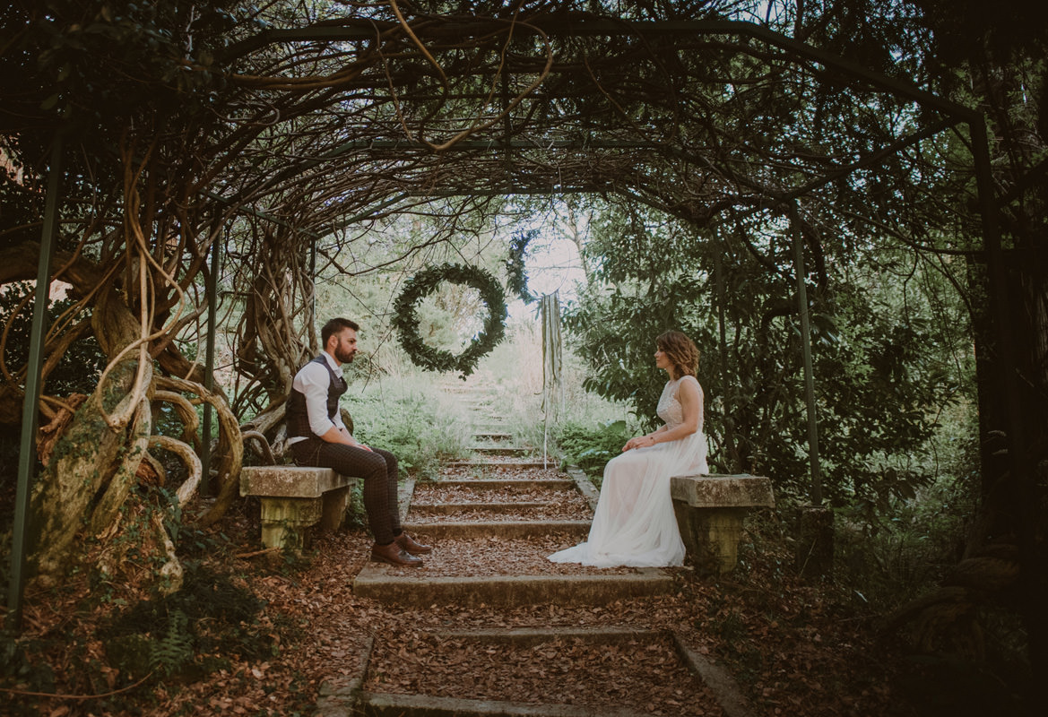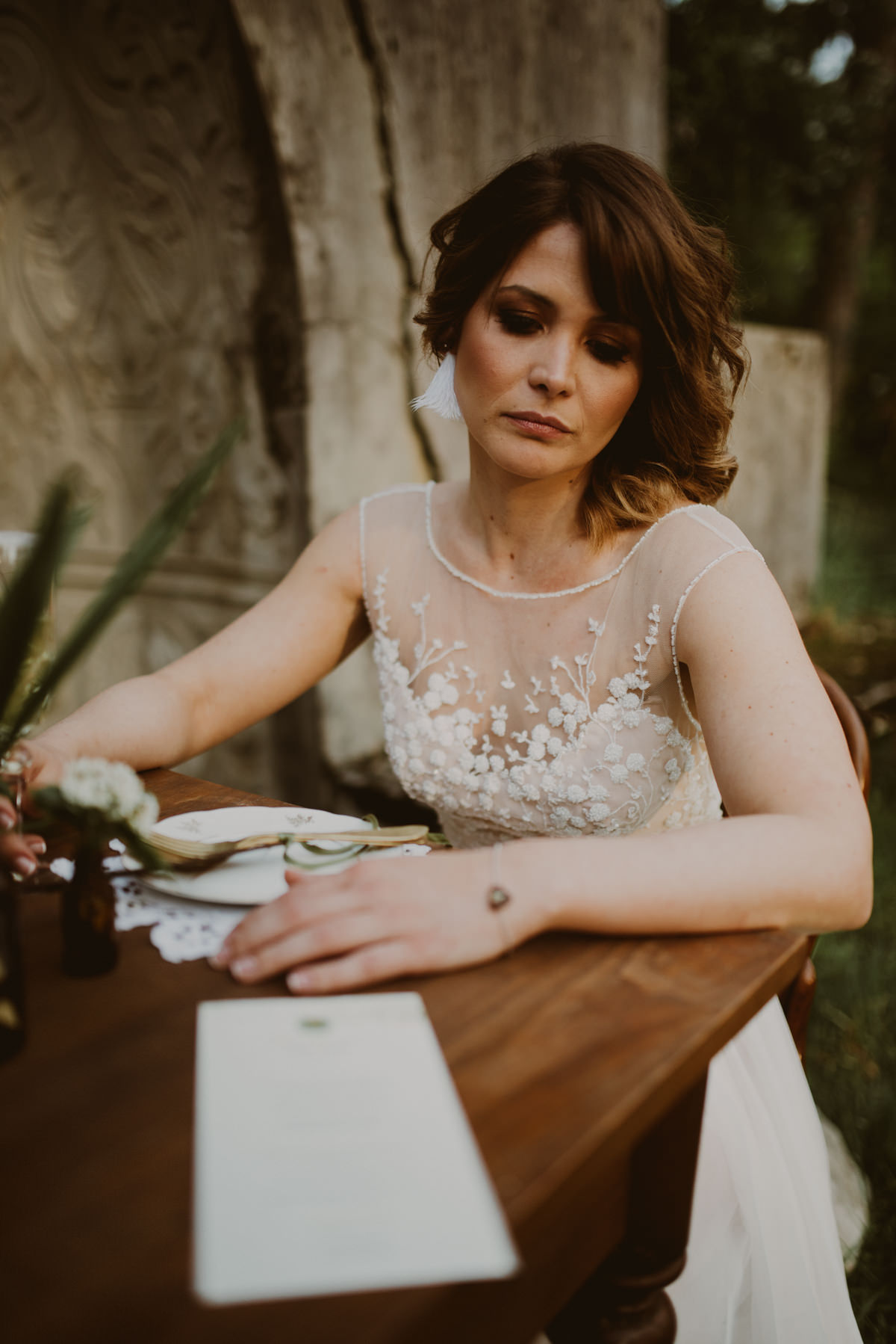 Idea about this boho chic vintage styled wedding has been playing in my mind for quite a while. At first I set my eye on a different location but later found out a few of my fellow photographers had already used it for similar shootings so I had to do the research from the begining. I came across Villa Rafut and just knew I had to go and see it. After number of phone calls I finally had a key in my hands. A few minutes in the gardens of the villa and I knew this was it. Villa Rafut is an abandoned neoislamic style villa build by an architect Anton Laščak, surrounded by tropical botanic garden. With one word, amazing.